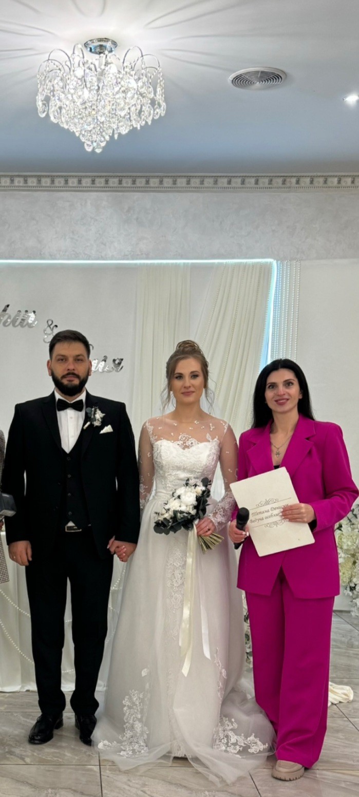Дорога Таня, ми щиро дякуємо Вам за те, що зробили наше весілля таким особливим і незабутнім! Ви створили атмосферу справжнього свята — сповненого щирих емоцій, радості та любові. Усе пройшло бездоганно, з посмішками та теплом у серці. Кожен момент був продуманий до дрібниць! Ми надзвичайно цінуємо Вашу доброту, позитив і професіоналізм. Ви вмієте знайти підхід до кожного, підтримати, розвеселити й розчулити одночасно. Завдяки Вам наш день був сповнений щастя, сміху й щирих сліз радості. Дякуємо, що вклали в наше свято частинку своєї душі! Ми безмежно раді, що саме Ви були поруч у цей важливий день. НАЙКРАЩА ВЕДУЧА!!!
